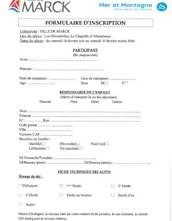 Pour s'inscrire aux différents séjours, il suffit de retirer le dossier d'inscription en ligne et de le déposer en mairie avant le 14 novembre 2024.