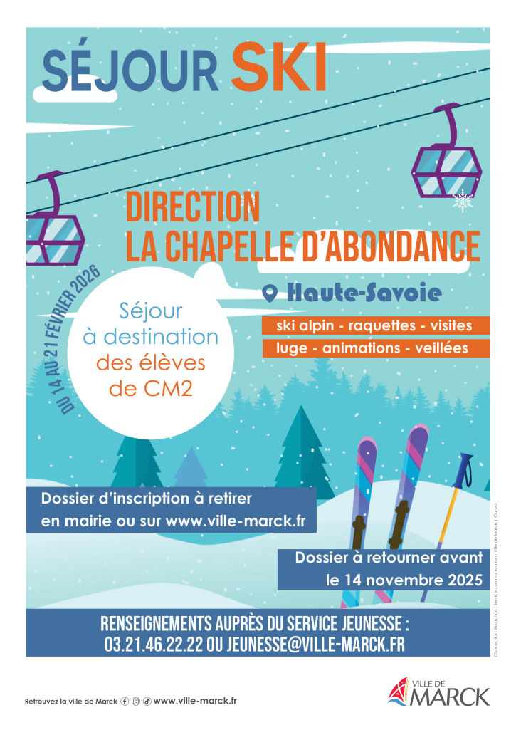 Où ? : En 2026, le séjour se déroule à la Chapelle d'Abondance. Pour voir des photos du séjour hiver, rendez vous sur la page facebook « Séjour Neige Marck 2026 »
